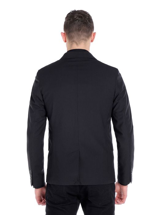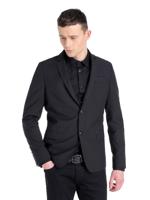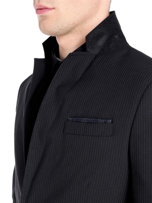 Long sleeves, pinstripe fabric, buttoned opening, side pockets, single chest pocket, logo detail.