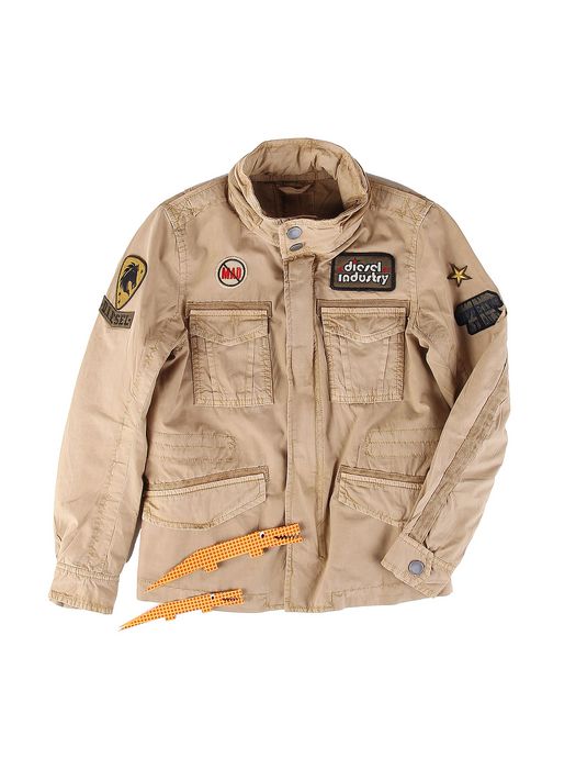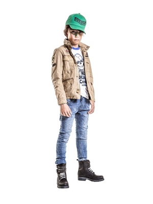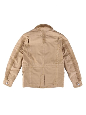Funnel neck, long sleeves, coulisse, four front pockets, treated popeline enriched with real patches.