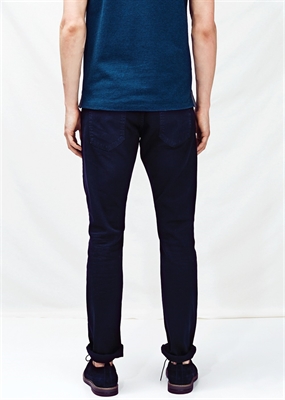 Jeans skinny en color navy que pertenecen a la colección denim. Cinco bolsillos, trabillas, bajo de 17 centímetros, cierre de cremallera y botón.