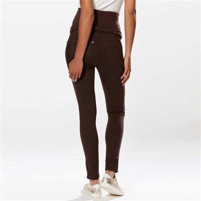 La moda indispensable: jegging stretch, con cintura de punto, 5 bolsillos con remaches, botón de fantasía y pespuntes tono sobre tono.72% algodon,26% poliester,2% elastanoLargo entrepierna 81 cm aprox. Lavable a máquina.
