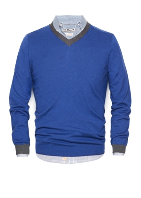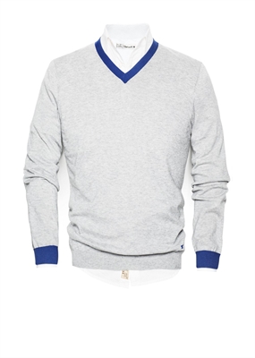 Jersey confeccionado en una mezcla de algodón y cashmere con ribetes en contraste que pertenece a la línea casual Blacksmith. Cuello pico y manga larga.