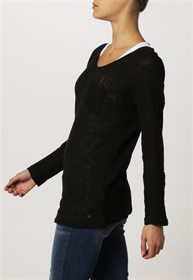 Largo:normalAjuste:normalModelo, altura:175 cmCuello/escote:cuello redondoOcasión:tiempo libreLargo de la prenda:65 cmTransparencia:poco transparenteLargo de la manga:50 cmLargo de manga:manga largaMaterial exterior:100% algodónCuidados:no utilizar secadora, lavar a máquina a 30°C, programa delicadoNúmero de artículo:QS121D0AL-Q11
