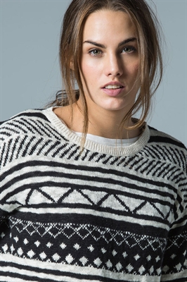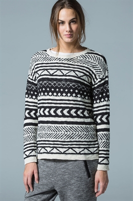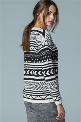 Forma: regular Jersey de manga larga, con cuello redondo y con jacquard étnico bicolor.