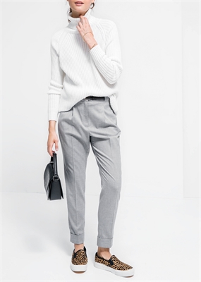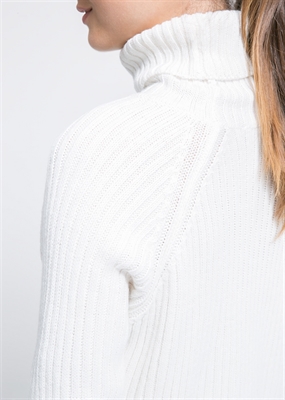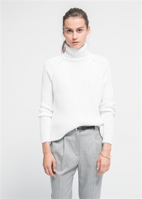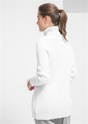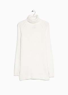 Jersey largo de canalé confeccionado en una mezcla de lana. Cuello vuelto y manga larga raglán.