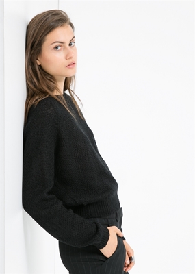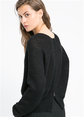 Jersey confeccionado en una mezcla de mohair y lana. Cuello redondo, manga larga raglán, cierre de cremallera en la espalda y terminaciones en canalé.