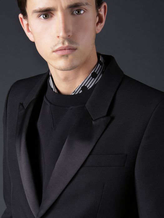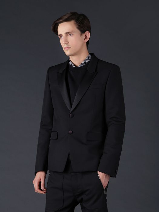 Diesel Black Gold's evening wear with a twist: a wool-mohair tuxedo jacket has a narrow fit and a contemporary finish.