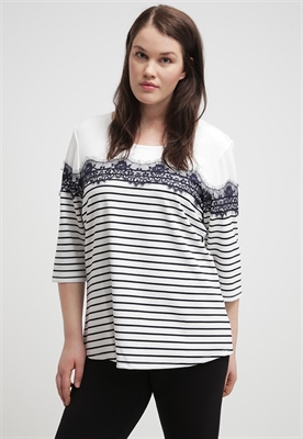 Largo:normalAjuste:normalMaterial/composición:jerseyModelo, altura:179 cm, lleva la talla 44/46Cuello/escote:cuello redondoOcasión:tiempo libreEstampado:de rayasLargo de la prenda:72 cmLargo de la manga:45 cmLargo de manga:3/4Material exterior:67% poliéster, 30% viscosa, 3% elastanoCuidados:no utilizar secadora, lavar a máquina a 30°C, encoge un 5%Número de artículo:JR421E00Y-K11