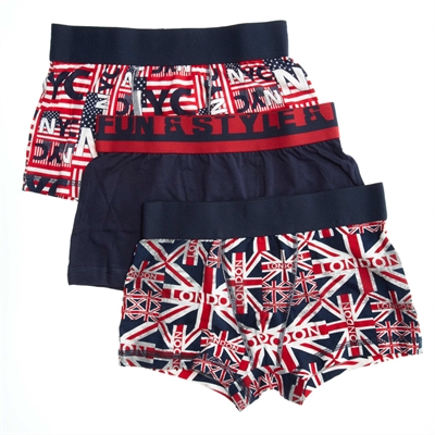 Todos soñamos con Nueva York y Londres. - Juego de 3 boxers - Algodón elástico - Cintura elástica - Refuerzo en la parte delantera - Estampado de grandes ciudades95% algodon,5% elastanoSe puede lavar a máquina.