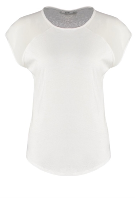 Largo:normalMaterial/composición:jerseyModelo, altura:179 cm, lleva la talla SCuello/escote:cuello redondoEstampado:unicolorLargo de la prenda:58 cmLargo de manga:manga extracortaMaterial exterior:70% algodón, 30% linoMaterial mangas:100% poliésterCuidados:no utilizar secadora, lavar a máquina a 30°C, programa delicadoNúmero de artículo:K4421DA03-A11