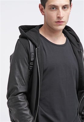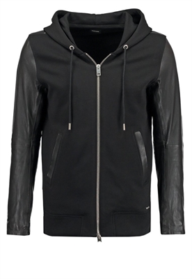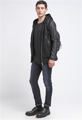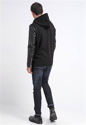 contiene partes no textiles de origen animalLargo:normalAjuste:normalCierre:cremalleraRelleno:100% algodónDetalle capucha:con cordónModelo, altura:186 cm, lleva la talla MOcasión:tiempo libreLargo de la prenda:72 cmCuello:capuchaDetalles:bolsillos verticalesLargo de la manga:63 cmLargo de manga:manga largaMaterial exterior:100% algodónMaterial mangas:100% cueroCuidados:lavado de cuero profesionalNúmero de artículo:DI122H00X-Q11