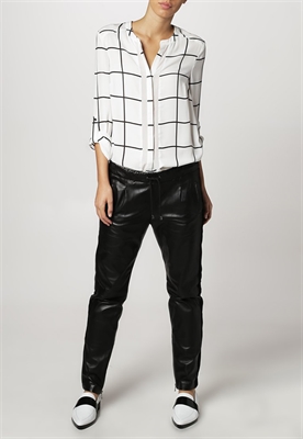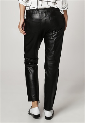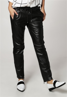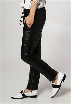 contiene partes no textiles de origen animalLargo:normalAjuste:loose fitLargo entrepierna:71 cmModelo, altura:178 cmLargo exterior de la pierna:96 cmBolsillos:traseros, lateralesEstampado:unicolorCintura:normalMaterial exterior:100% cueroCuidados:lavado de cuero profesionalNúmero de artículo:OA121A009-Q11