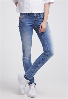 Largo:normalAjuste:pitilloLargo entrepierna:86 cmMaterial/composición:vaqueroModelo, altura:180 cm, lleva la talla 27x34Largo exterior de la pierna:103 cmCierre:botonesBolsillos:traseros, lateralesCintura:bajoMaterial exterior:87% algodón, 12% poliéster, 1% elastanoCuidados:lavar a máquina a 40 °C, no utilizar secadoraNúmero de artículo:MA621N00K-K12