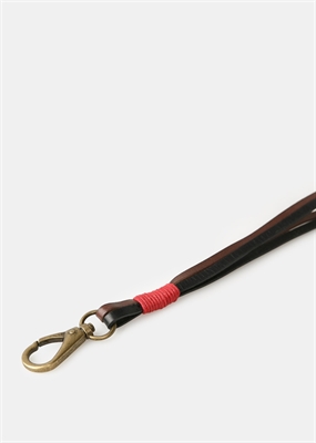 Llavero doble bicolor de cuero con detalle en contraste y cierre de mosquetón.