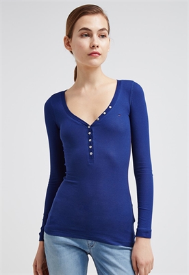 Largo:normalAjuste:slim fitModelo, altura:182 cm, lleva la talla SCuello/escote:henleyOcasión:tiempo libreEstampado:unicolorLargo de la prenda:61 cmLargo de la manga:62 cmLargo de manga:manga largaMaterial exterior:94% algodón, 6% elastanoCuidados:lavar a máquina a 30°C, programa delicadoNúmero de artículo:HI121D08Q-K11