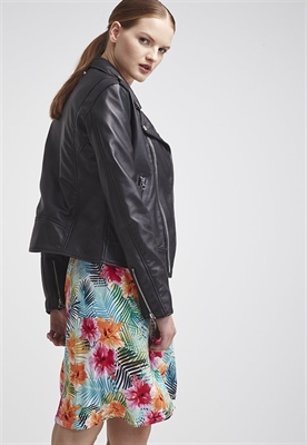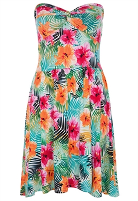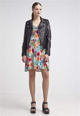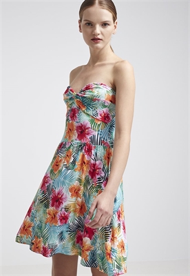 Largo:cortaAjuste:tailoredMaterial/composición:jerseyModelo, altura:178 cm, lleva la talla MEstampado:de floresLargo de la prenda:72 cmDetalles:cintura elásticaLargo de manga:hombros descubiertosMaterial exterior:95% viscosa, 5% elastanoCuidados:no utilizar secadora, lavar a máquina a 30°C, programa delicadoNúmero de artículo:SM421C046-J11