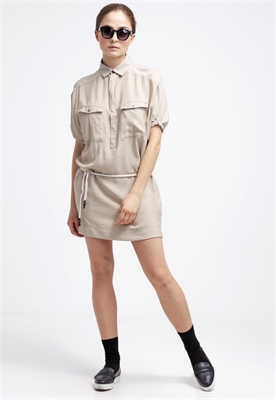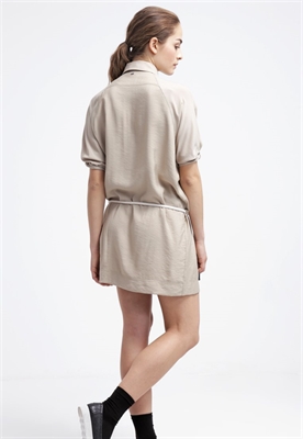 Largo:cortaAncho de la espalda:38 cmModelo, altura:174 cm, lleva la talla SOcasión:tiempo libreEstampado:unicolorLargo de la prenda:87 cmCuello:camiseroDetalles:cinturón incluido, tira de botonesLargo de manga:cortaMaterial exterior:88% viscosa, 12% nylonMaterial mangas:100% viscosaCuidados:no utilizar secadora, lavar a máquina a 30°C, programa delicadoNúmero de artículo:GS121C037-B11