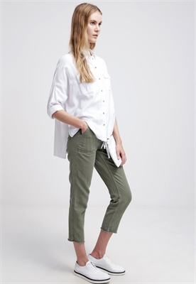 Largo:largoAjuste:normalLargo entrepierna:64 cmModelo, altura:180 cm, lleva la talla 36Ocasión:tiempo libreLargo exterior de la pierna:91 cmCierre:cremallera invisibleBolsillos:traseros, lateralesEstampado:unicolorCintura:altoMaterial exterior:67% algodón, 33% linoCuidados:lavar a máquina a 40 °C, no utilizar secadoraNúmero de artículo:TP721A04G-N11