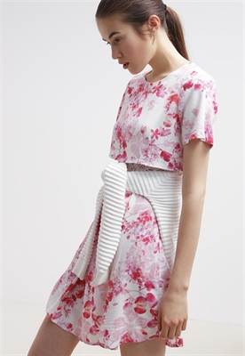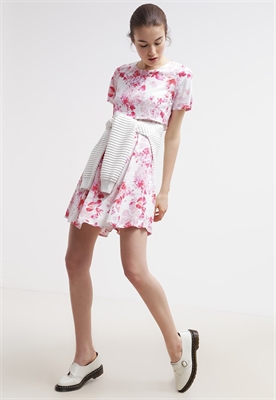 Largo:cortaAjuste:normalCierre:cremalleraAncho de la espalda:28 cmModelo, altura:178 cm, lleva la talla SCuello/escote:cuello redondoEstampado:de floresLargo de la prenda:84 cmDetalles:costura bajo el pecho, enaguasLargo de manga:cortaMaterial exterior:100% poliésterCuidados:lavar a máquina a 40 °C, no utilizar secadoraNúmero de artículo:BH921C005-T11