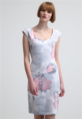 Largo:por la rodillaModelo, altura:180 cm, lleva la talla MCuello/escote:en V pronunciadoEstampado:de floresLargo de la prenda:99 cmLargo de manga:sin mangasMaterial exterior:65% viscosa, 30% poliéster, 5% elastanoNúmero de artículo:KA321C03Y-D11