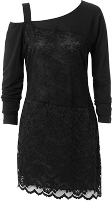 MAXI CAMISETA DE UN HOMBRO EN ENCAJE
