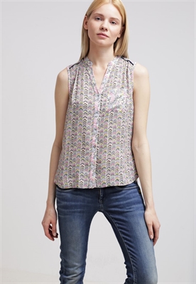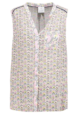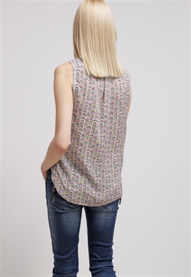 Largo:normalAjuste:normalAncho de la espalda:38 cmModelo, altura:177 cm, lleva la talla SCuello/escote:en V pronunciadoOcasión:tiempo libreEstampado:multicolorLargo de la prenda:70 cmDetalles:tira de botones, costura bajo el pechoLargo de manga:sin mangasMaterial exterior:100% viscosaCuidados:no utilizar secadora, lavar a máquina a 30°C, programa delicadoNúmero de artículo:CU221E02G-T12
