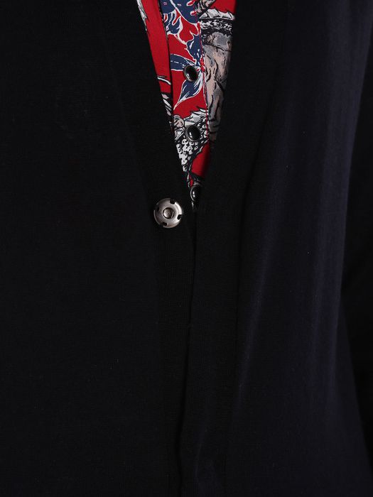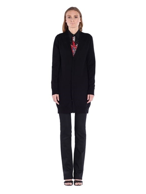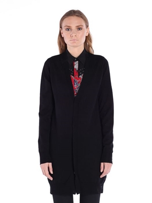 16 gauges merino wool V-neck cardigan with metal bottons on front opening.