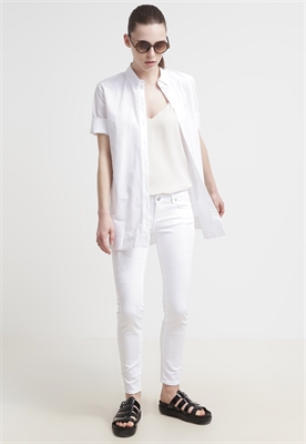 contiene partes no textiles de origen animalLargo:normalAjuste:pitilloLargo entrepierna:73 cmMaterial/composición:vaqueroModelo, altura:177 cm, lleva la talla 27Largo exterior de la pierna:91 cmCierre:cremallera invisibleBolsillos:traseros, lateralesEstampado:unicolorCintura:bajoMaterial exterior:98% algodón, 2% elastanoCuidados:lavar a máquina a 30°CNúmero de artículo:LT121N00S-K11