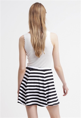 Largo:cortaAjuste:normalMaterial/composición:jerseyModelo, altura:179 cm, lleva la talla SOcasión:tiempo libreEstampado:de rayasLargo de la prenda:41 cmDetalles:cintura elásticaMaterial exterior:95% algodón, 5% elastanoCuidados:no utilizar secadora, lavar a máquina a 30°C, programa delicadoNúmero de artículo:EV421BA01-Q12