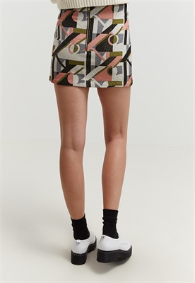 Largo:cortaAjuste:ceñidosModelo, altura:178 cm, lleva la talla 36Estampado:multicolorLargo de la prenda:35 cmDetalles:cremalleraMaterial exterior:51% poliéster, 41% algodón, 6% viscosa, 2% metalCuidados:lavar a máquina a 40 °C, no utilizar secadora, programa delicadoNúmero de artículo:TP721B014-H11