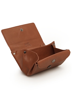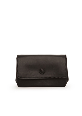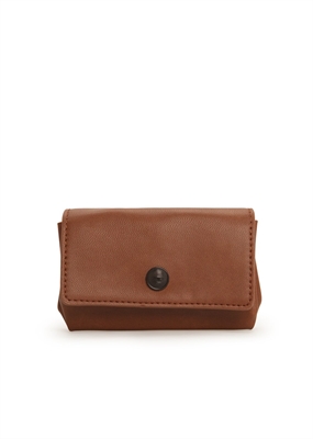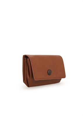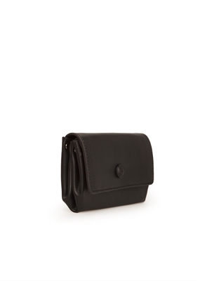Monedero con solapa y cierre de botón a presión. Tres compartimentos interiores y forro de piel.