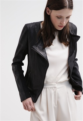 contiene partes no textiles de origen animalLargo:cortaAjuste:tailoredCierre:cremalleraRelleno:100% poliésterBolsillos:con cremallera, interioresAncho de la espalda:33 cmModelo, altura:177 cm, lleva la talla XSLargo de la prenda:52 cmLargo de la manga:63 cmLargo de manga:manga largaMaterial exterior:100% cueroCuidados:lavado de cuero profesionalNúmero de artículo:M2921L00J-Q11