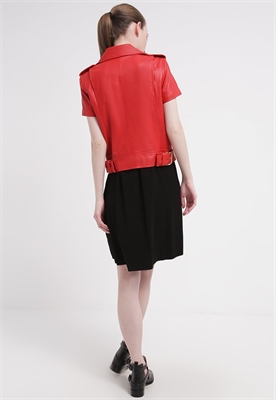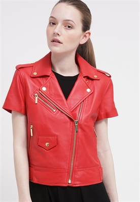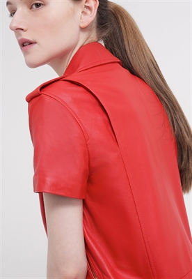 Largo:cortaAjuste:normalCierre:cremalleraRelleno:97% poliéster, 3% elastanoBolsillos:con cremalleraAncho de la espalda:34 cmModelo, altura:177 cm, lleva la talla SOcasión:tiempo libreEstampado:unicolorLargo de la prenda:53 cmCuello:tipo sastreLargo de manga:cortaMaterial exterior:100% cueroCuidados:lavado de cuero profesionalNúmero de artículo:MK121W001-G11