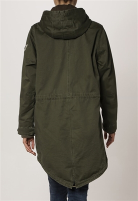 Largo:largoAjuste:normalCierre:cremalleraRelleno:44% algodón, 38% lana, 18% poliésterDetalle capucha:con cordón, forradaBolsillos:con solapaAncho de la espalda:45 cmModelo, altura:181 cmEstampado:unicolorLargo de la prenda:96 cmCuello:capuchaLargo de la manga:63 cmMaterial exterior:100% algodónCuidados:lavar a máquina a 30°C, programa delicadoNúmero de artículo:DI121O000-N11