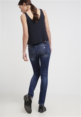 contiene partes no textiles de origen animalLargo:normalAjuste:pitilloLargo entrepierna:80 cmMaterial/composición:vaqueroModelo, altura:181 cm, lleva la talla 27x32Largo exterior de la pierna:101 cmCierre:cremallera invisibleBolsillos:traseros, lateralesCintura:normalMaterial exterior:92% algodón, 8% poliésterCuidados:lavar a máquina a 30°C, programa delicadoNúmero de artículo:GU121N02I-K11