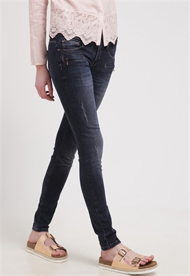 contiene partes no textiles de origen animalLargo:normalAjuste:slim fitLargo entrepierna:81 cmMaterial/composición:vaqueroModelo, altura:181 cm, lleva la talla 27x32Ocasión:tiempo libreLargo exterior de la pierna:100 cmCierre:cremallera invisibleBolsillos:traseros, lateralesCintura:bajoMaterial exterior:99% algodón, 1% elastanoCuidados:no utilizar secadora, lavar a máquina a 30°CNúmero de artículo:6FR21N00M-K11