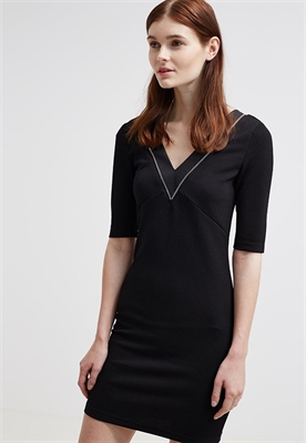 Largo:cortaAjuste:tailoredCierre:cremalleraMaterial/composición:jerseyModelo, altura:177 cm, lleva la talla 36Cuello/escote:espalda al aireOcasión:fiestaEstampado:unicolorLargo de la prenda:89 cmDetalles:costura bajo el pechoLargo de manga:mediaMaterial exterior:97% poliéster, 3% elastanoCuidados:no utilizar secadora, lavar a máquina a 30°C, encoge un 5%Número de artículo:NM321C01F-Q11