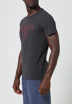 Largo:normalMaterial/composición:jerseyModelo, altura:186 cm, lleva la talla MCuello/escote:cuello redondoOcasión:homewearEstampado:jaspeadoLargo de la prenda:71 cmLargo de manga:cortaMaterial exterior:100% algodónCuidados:lavar a máquina a 40 °C, no utilizar secadora, programa delicadoNúmero de artículo:TO182B01G-Q11