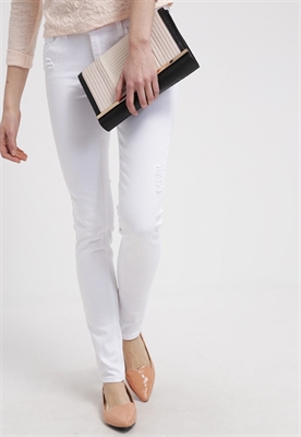 contiene partes no textiles de origen animalAjuste:pitilloLargo entrepierna:82 cmModelo, altura:179 cm, lleva la talla 27x32Largo exterior de la pierna:104 cmCierre:cremallera invisibleBolsillos:traseros, lateralesEstampado:unicolorCintura:bajoMaterial exterior:98% algodón, 2% elastanoCuidados:lavar a máquina a 40 °C, no utilizar secadoraNúmero de artículo:TO721N00L-A11
