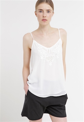 Largo:normalAjuste:normalAncho de la espalda:42 cmModelo, altura:178 cm, lleva la talla 36Cuello/escote:en V pronunciadoOcasión:tiempo libreEstampado:unicolorLargo de la prenda:46 cmTransparencia:poco transparenteLargo de manga:tirantes finosMaterial exterior:100% poliésterCuidados:no utilizar secadora, lavar a máquina a 30°CNúmero de artículo:ON321D0M2-A11