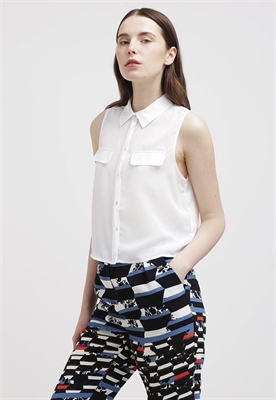 contiene partes no textiles de origen animalLargo:cortaCierre:botónAncho de la espalda:35 cmModelo, altura:177 cm, lleva la talla 36Estampado:unicolorLargo de la prenda:48 cmCuello:camiseroTransparencia:poco transparenteLargo de manga:sin mangasMaterial exterior:100% poliésterCuidados:no utilizar secadora, lavar a máquina a 30°C, encoge un 5%, programa delicadoNúmero de artículo:ON321E06D-A11