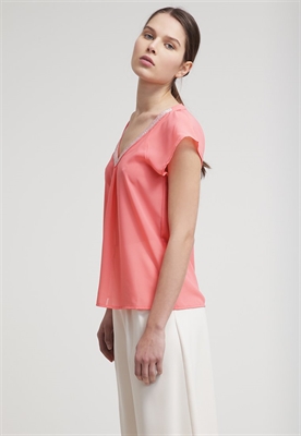 Largo:tres cuartosAncho de la espalda:30 cmModelo, altura:181 cm, lleva la talla 36Cuello/escote:en V pronunciadoEstampado:unicolorLargo de la prenda:58 cmTransparencia:poco transparenteLargo de manga:manga extracortaMaterial exterior:100% poliésterCuidados:no utilizar secadora, lavar a máquina a 30°C, encoge un 5%Número de artículo:ON321E06J-J11
