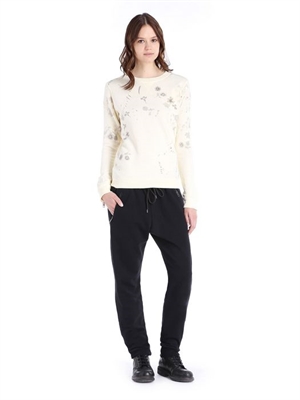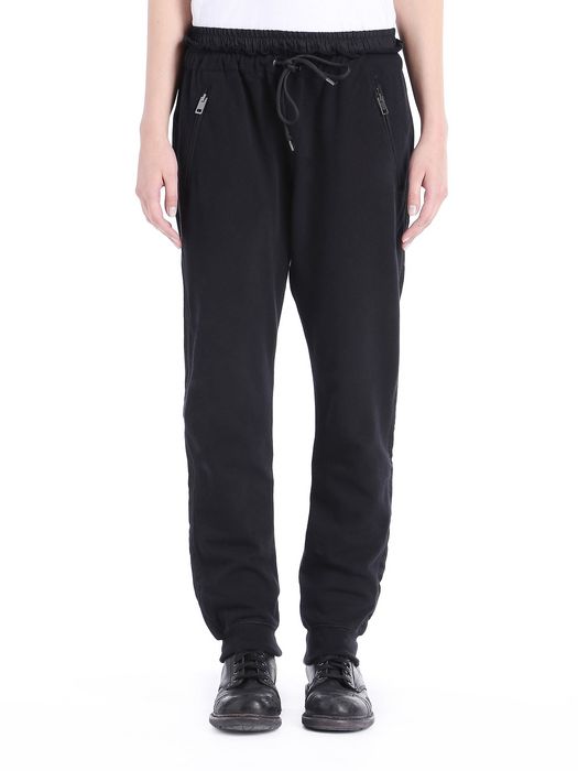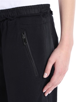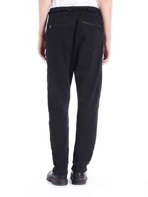 Coulisse, elastic waistband, two zip side pockets, two zip back pockets, rib ankle cuffs.