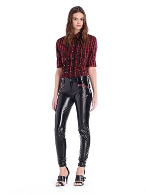 Buttoned opening, side pockets, zip details, belt loop waistband.