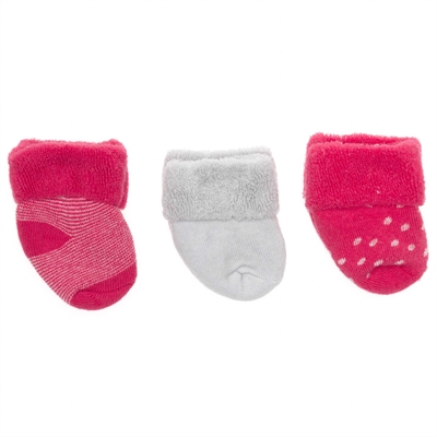 Estilo y comodidad para tu bebé gracias a estos calcetines con el interior de punto de rizo. - Pack de 3 pares de calcetines - 2 pares con motivos de rayas y lunares y 1 par liso - Rizo en el interior79% algodon,18% poliester,3% elastanoLavable a máquina.