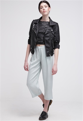 Largo:3/4Largo entrepierna:59 cmModelo, altura:178 cm, lleva la talla 36Largo exterior de la pierna:84 cmCierre:cremallera invisibleBolsillos:lateralesEstampado:unicolorCintura:altoMaterial exterior:100% fibra de lyocellNúmero de artículo:MB121A01J-M11