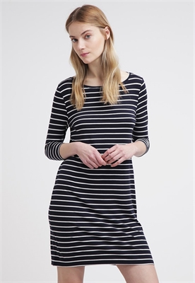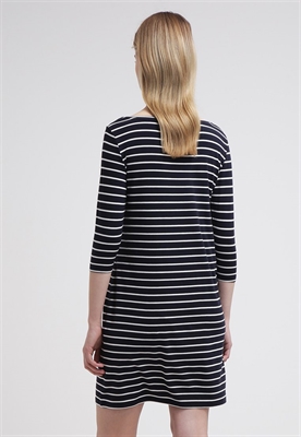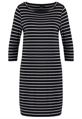 Largo:cortaModelo, altura:179 cm, lleva la talla 36Cuello/escote:cuello redondoOcasión:tiempo libreEstampado:de rayasLargo de la prenda:85 cmLargo de la manga:39 cmLargo de manga:3/4Material exterior:95% fibra de lyocell, 5% elastanoCuidados:lavar a máquina a 40 °C, no utilizar secadora, encoge un 5%Número de artículo:SE521C05V-K11