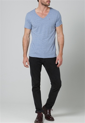 Largo:normalAjuste:normalMaterial/composición:jerseyModelo, altura:189 cmCuello/escote:en V pronunciadoOcasión:tiempo libreEstampado:jaspeadoLargo de la prenda:68 cmLargo de manga:cortaMaterial exterior:60% algodón, 40% poliésterCuidados:lavar a máquina a 30°C, programa delicadoNúmero de artículo:HI122O025-K11