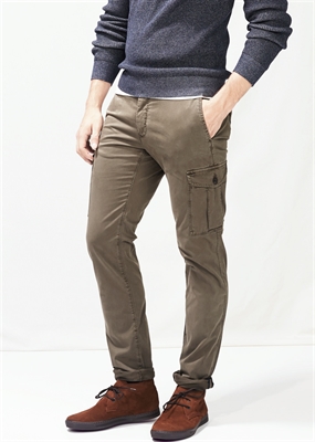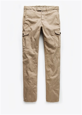 Pantalón cargo garment-dyed en una mezcla de algodón que pertenece a la línea casual. Dos bolsillos laterales, bolsillo portamonedas y dos bolsillos cargo. Dos bolsillos de ribete con botón en la parte posterior, trabillas, cierre de cremallera y botón.