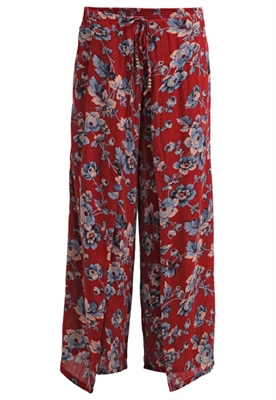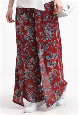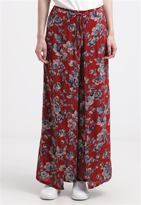 Largo:largoAjuste:anchoLargo entrepierna:73 cmModelo, altura:178 cm, lleva la talla SOcasión:tiempo libreLargo exterior de la pierna:101 cmEstampado:de floresDetalles:cintura elásticaCintura:normalMaterial exterior:55% algodón, 45% viscosaCuidados:lavar a mano, se puede lavar en secoNúmero de artículo:D3021A03K-G11