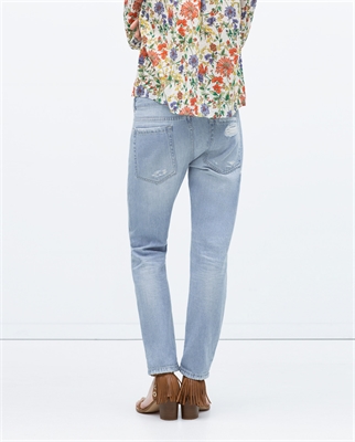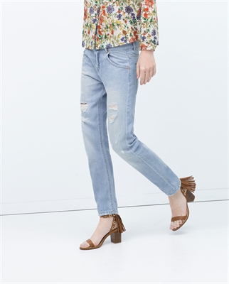 Pantalón denim boyfriend. Cinco bolsillos. Rotos en cintura y bolsillo.ALTURA MODELO: 178 cm